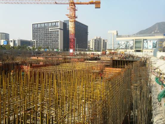 軸地下室頂梁板筋安裝。